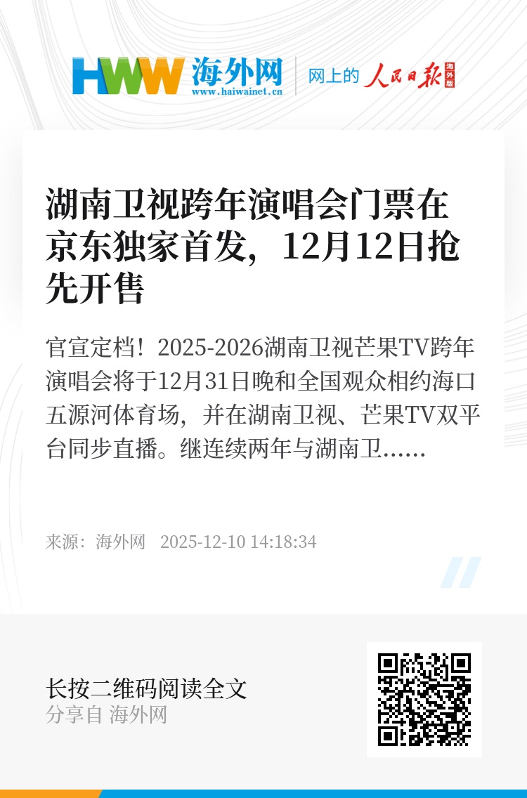官宣定档!2025-2026湖南卫视芒果TV跨年演唱会将于12月31日晚和全国观众相约海口五源河体育场,并在湖南卫视、芒果TV双平台同步直播。继连续两年与湖南卫视深度携手后,今年京东再度作为跨年演唱会的独家冠名商,将为广大观众及消费者带来众多惊喜福利,与大家共迎开年好运。