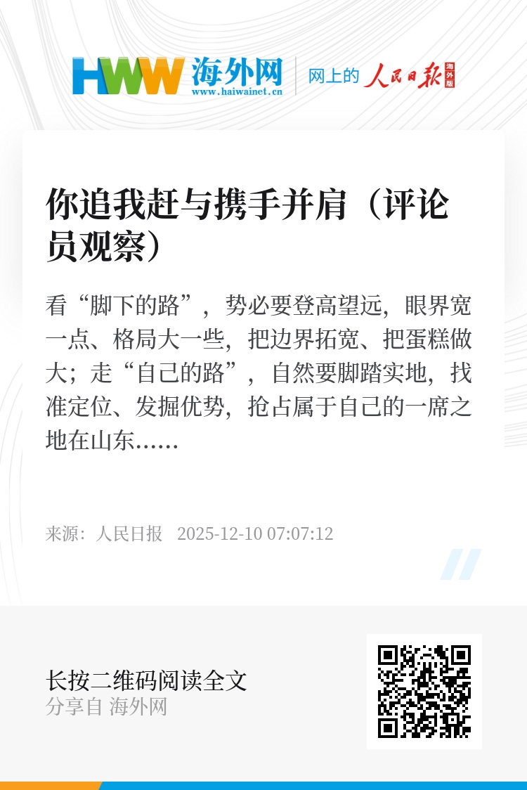田径赛场,有你追我赶的比拼,也有携手并肩的行进。企业发展的赛道亦是如此。相近相邻、共生共赢,握指成拳、各展所长,中国经济这片大海足够深广,创新发展的天地无比广阔。(盛玉雷)