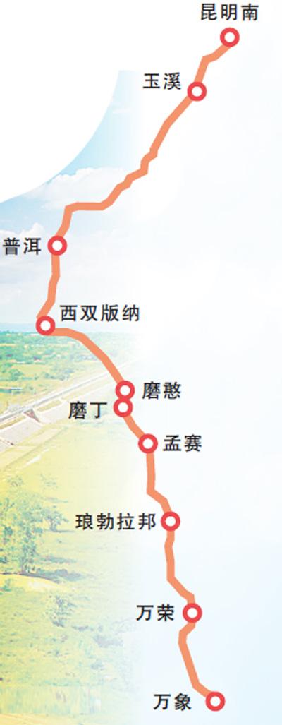中老铁路主要站点线路图。