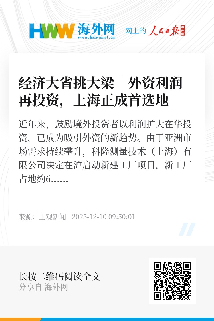 利好政策很快转化为企业的账面实惠。“新政为外资企业送来‘及时雨’。”科隆测量技术(上海)有限公司松江工厂负责人陈建龙说,政策发布后,上海相关部门为企业梳理了相关细节,尤其是在申报路径和计算规则上给予指导。“公司今年的利润再投资符合税收抵免条件,预计可享受税收减免300多万元。”他表示,新工厂投运后,不仅可为中国市场提供高科技产品及最优的测量解决方案,业务也将进一步辐射亚洲区域。