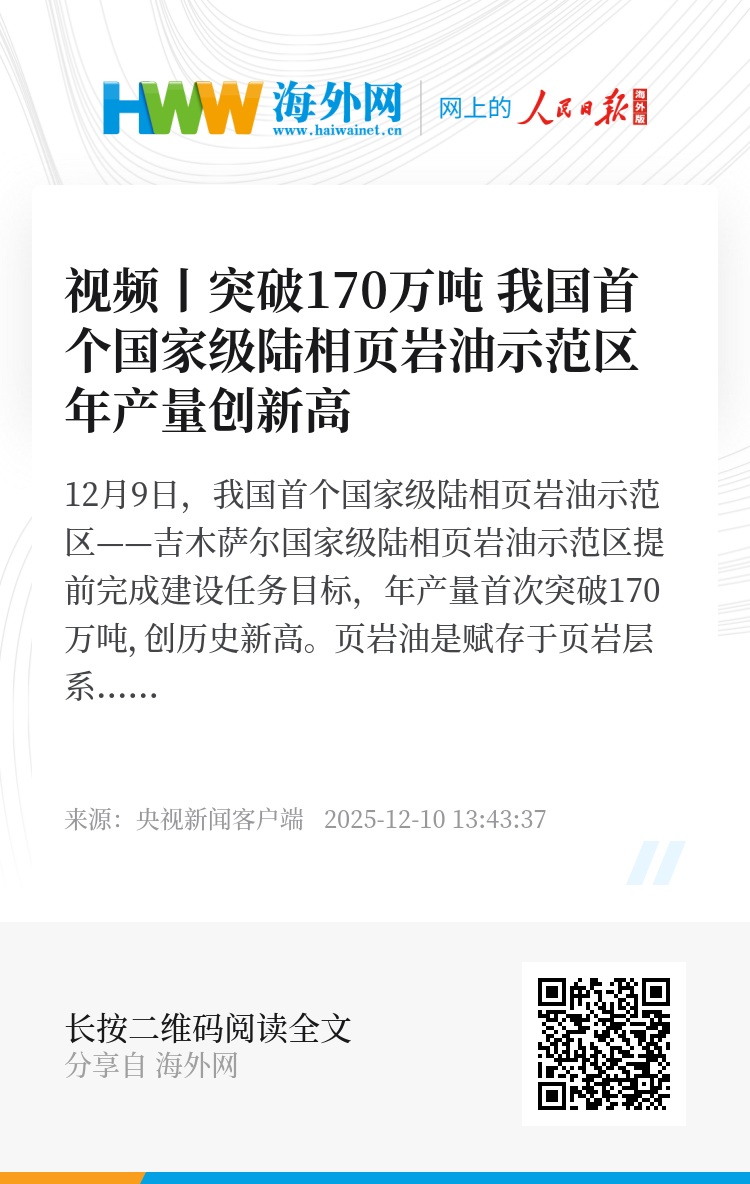 12月9日,我国首个国家级陆相页岩油示范区——吉木萨尔国家级陆相页岩油示范区提前完成建设任务目标,年产量首次突破170万吨,创历史新高。