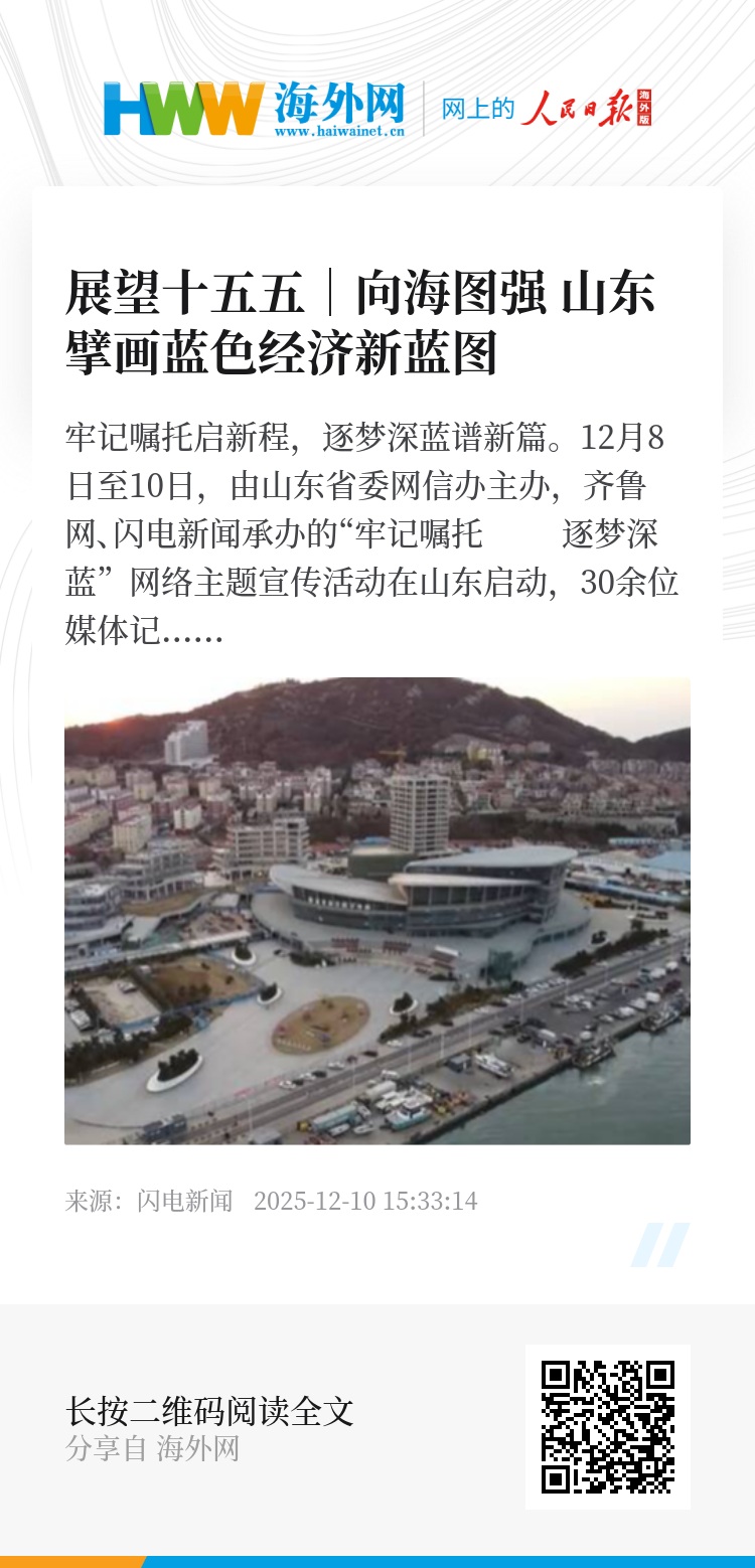 潮起东方,逐梦深蓝。“牢记嘱托 逐梦深蓝”网络主题宣传活动,既是对过往成就的回望,更是对未来征程的誓师。从青岛港的智能化改造到烟台的海洋牧场建设,从威海的蓝碳交易探索到日照的绿色港口实践,齐鲁儿女用智慧和汗水书写着新时代的海洋传奇。在这片充满生机的海域上,科技与产业共舞,生态与发展同行,文化与经济交融,一个更加繁荣的“海上新山东”正破浪前行,为海洋强国建设贡献着山东力量。(文/林伟)