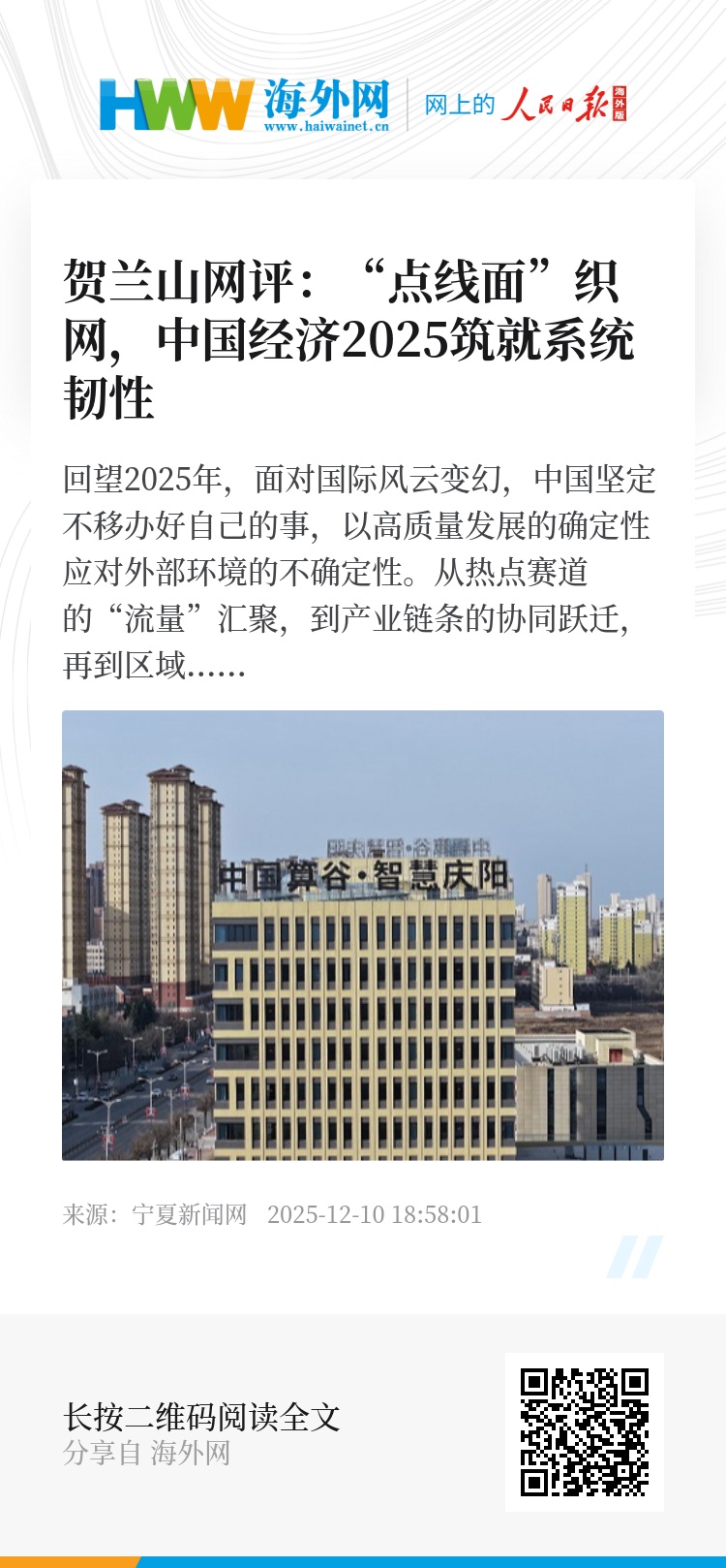 从“点”的突破到“线”的贯通,再到“面”的融合,2025年中国经济图景清晰展现出从追逐“流量”到培育“根系”的转型。“十五五”规划建议为“点线面”协同发展绘就蓝图,中国经济的多重优势叠加形成系统韧性,这正是应对复杂局面的关键底气。