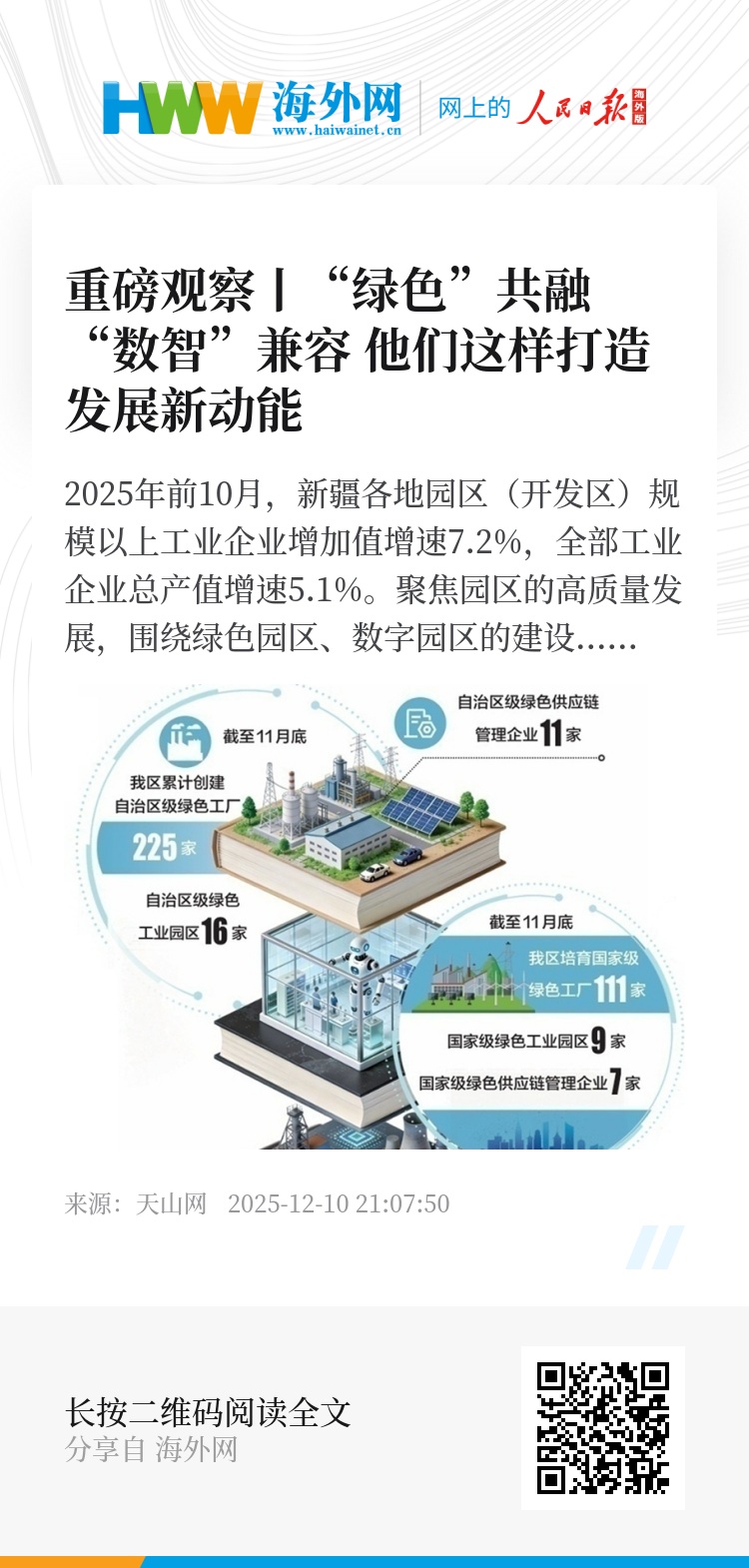 2025年前10月,新疆各地园区(开发区)规模以上工业企业增加值增速7.2%,全部工业企业总产值增速5.1%。聚焦园区的高质量发展,围绕绿色园区、数字园区的建设以及营商环境的优化,记者走进部分园区进行了采访。