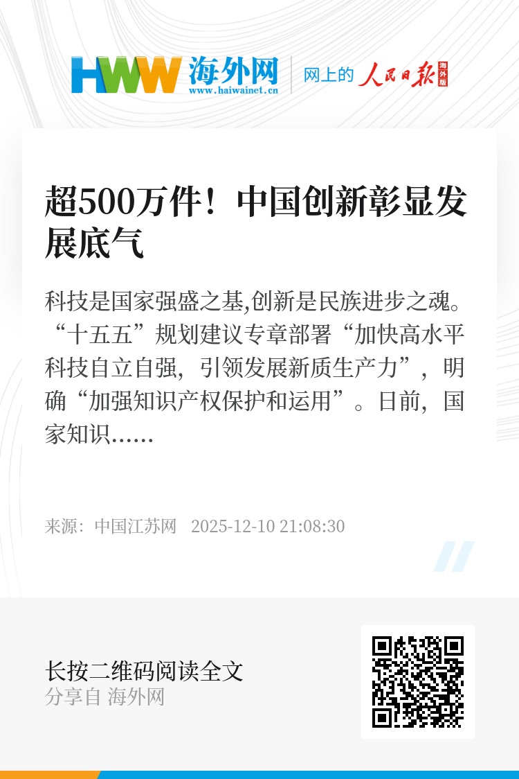 站在回望“十四五”、展望“十五五”的关键节点,我们能清晰看见有效发明专利拥有量超过500万件背后,镌刻着中华民族自强不息的精神。当然,我们也要清楚,抓住核心技术,要在科技攻关中持续努力,在未来产业中谋篇布局,要在创新生态中不断优化,将科技创新置于全盘工作最重要的位置上,让更多科技创新的人才得到足够的厚待与尊重,才能更好释放科技人才的潜力,也才能在未来的发展中继续抢占先机、赢得优势。