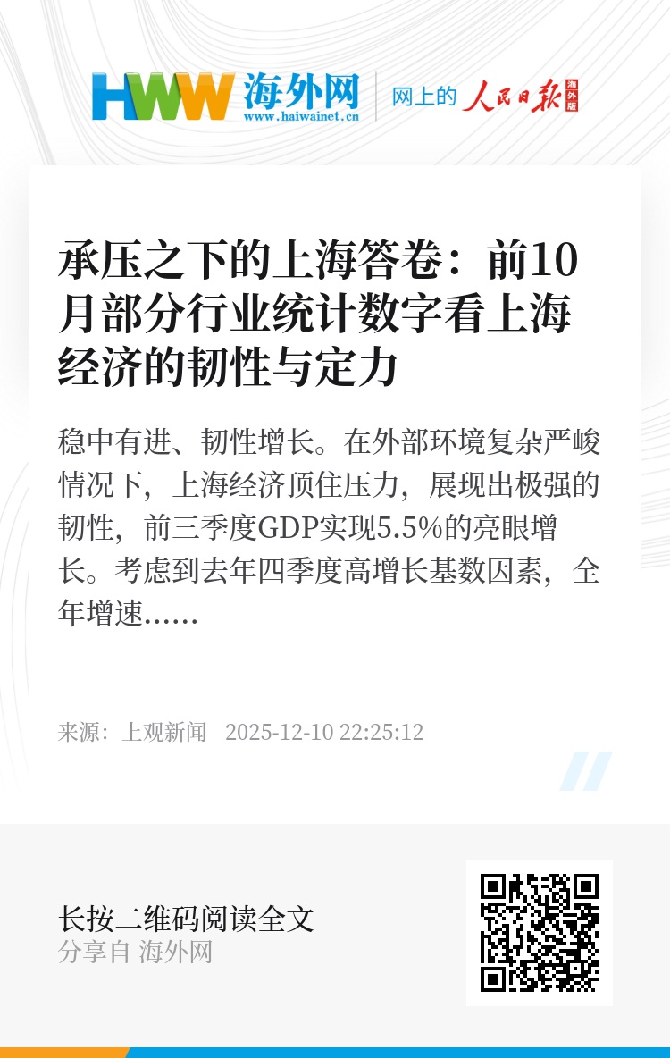 应该看到,外部环境的压力依然存在,内部结构调整还在进行时。展望未来,上海仍需保持战略定力,继续聚焦高质量发展这个首要任务,不断谋划新举措,不断抢抓新机遇,为“十五五”发展积蓄强大力量。