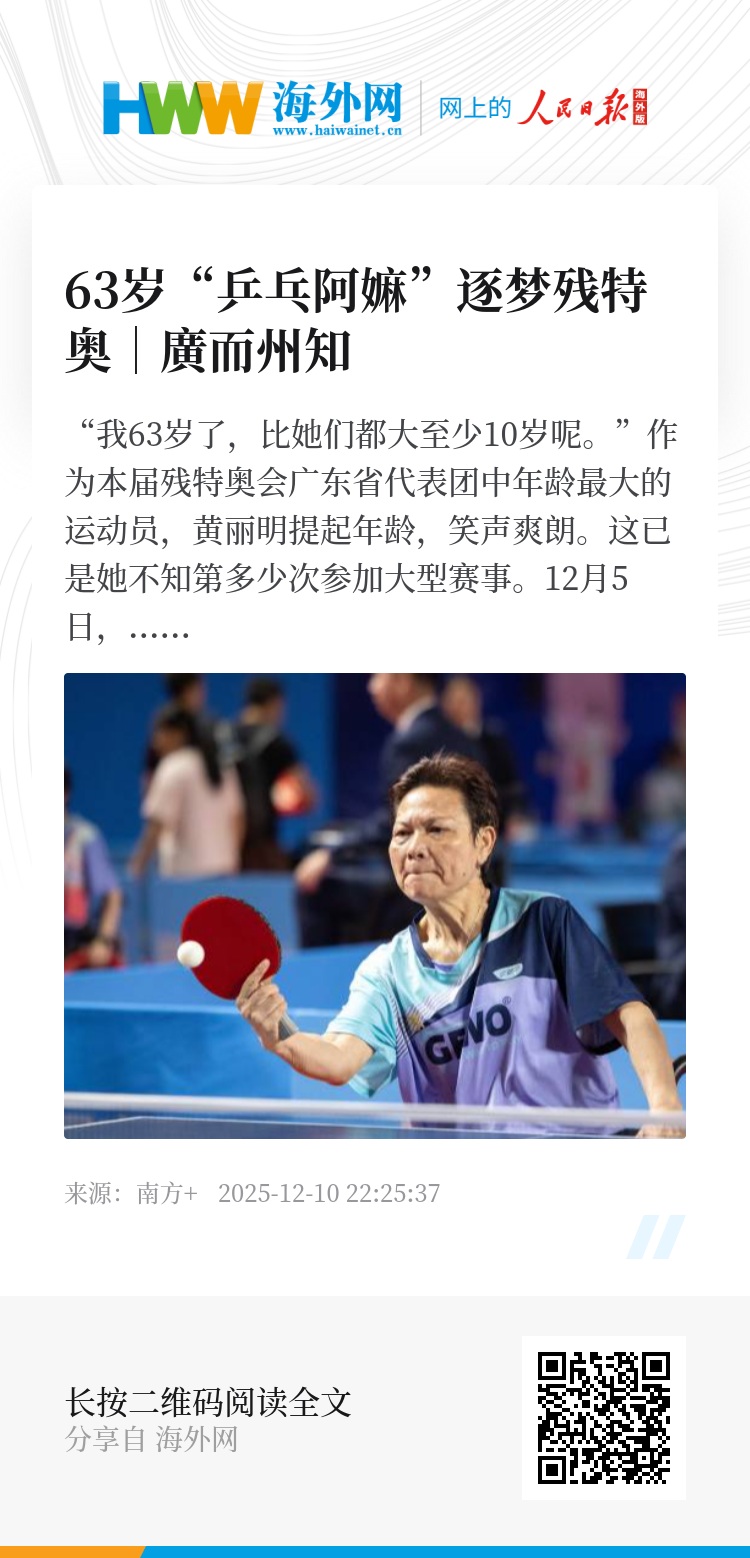 “我63岁了,比她们都大至少10岁呢。”作为本届残特奥会广东省代表团中年龄最大的运动员,黄丽明提起年龄,笑声爽朗。这已是她不知第多少次参加大型赛事。