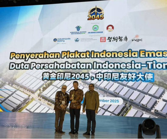 与会政府领导及专家一致肯定万信达产业园在推动近千家中资企业、近2万名投资者来印尼考察方面的突出贡献。FORMAS全球投资服务中心、VOX POINT Indonesia全国主席、FORMAS印尼黄金社会论坛主席Yohanes Handojo共同向万信达控股集团董事长陈日铃授予“黄金印尼2045中印尼文化大使”荣誉称号。