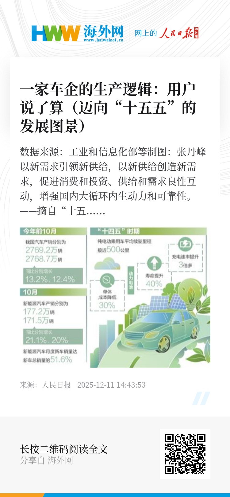 同一款车,面向80多个国家和地区同步开发。今年以来,已有近5万辆银河E5销往海外。“我们组建了全球研发团队,在保持核心性能一致的基础上,针对不同市场做本地化适配。”李飞平说,比如,在气候炎热的地区,配置加强版空调;在多山地区,增强轮胎摩擦力。