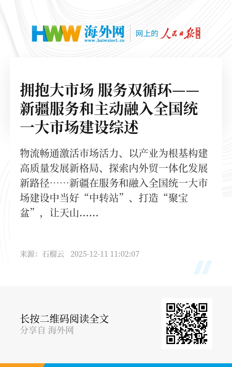 这一系列发展实践,生动诠释了新疆服务和融入全国统一大市场建设的深刻内涵。