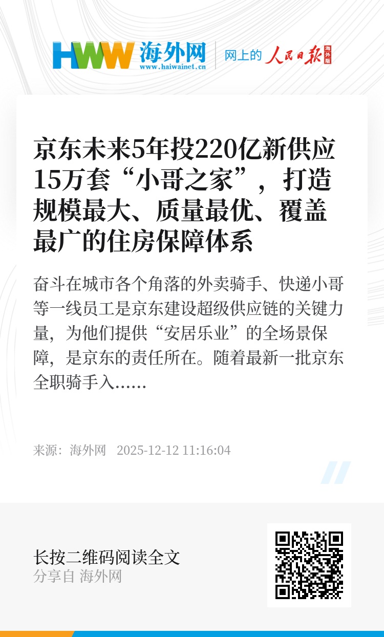 随着最新一批京东全职骑手入住位于北京通州区的“京东小哥之家”,京东已面向一线员工提供了2.8万套住房。今日,京东宣布,未来5年还将投入220亿,通过租赁、自建以及住房保障基金支持等方式,提供15万套“小哥之家”,进一步改善外卖骑手、快递小哥的居住条件。在住房保障之外,京东同步完善一线员工的福利保障、职业培训体系,把对员工的关怀落实到衣食住行与个人成长的全过程之中。