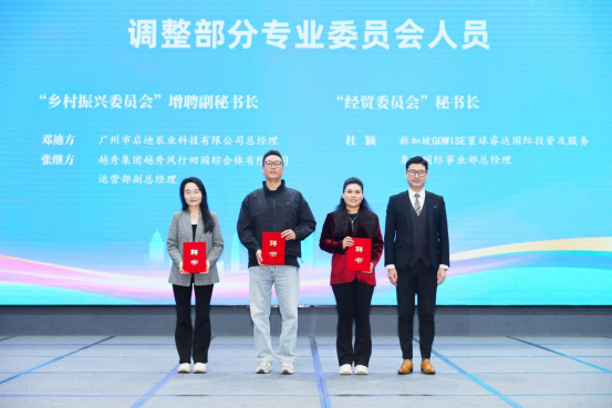 为进一步优化组织架构,强化专业服务效能,活动上增聘李凯伦为常务副会长,沈晖、曾剑华等2人为副会长,邓迪方、叶伟芝、卢杰、杨瑶、张继方、黄文飞等6人为理事;同步增聘邓迪方、张继方为乡村振兴委员会副秘书长,调整杜颖为经贸委员会秘书长。新鲜血液的注入,将进一步提升联谊会服务的精准度与专业性,为各项工作开展注入新活力。