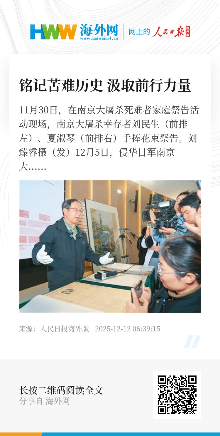 网友“逝风”留言说:“为国际友人的正直和善良感动,感谢他们愿意记录并勇于说出事实。”网友“七色凉橙”说:“国家公祭日是中国的,也是世界的,这一天的意义不仅仅在于让国人铭记历史,更在于向全世界表达中国维护和平的决心,让我们一起以史为鉴,开创未来!”(本报记者 刘乐艺)