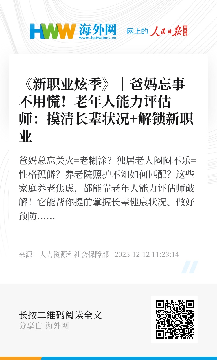 它能帮你提前掌握长辈健康状况、做好预防,又是银发经济里的刚需,一人一岗,既护家人又谋发展。