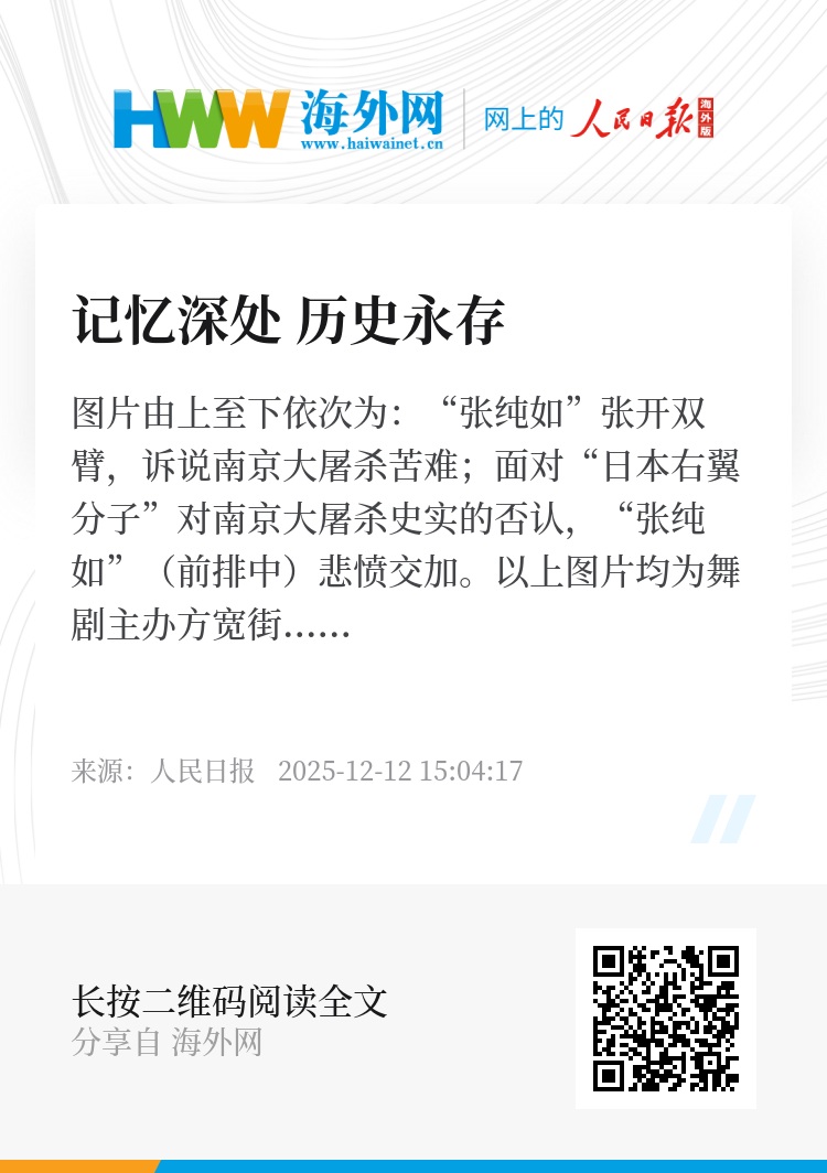正如张纯如在《南京大屠杀》的引言中所说:“除非有人促使世界记住这段历史,否则悲剧随时可能重演。”今天,战争的阴霾仍未散尽,沉痛的过往警钟长鸣:和平不是历史的必然,而是需要一代代人主动守护的珍贵成果。和平呼唤所有国家和民族携手同行,共建一个铭记历史、珍视生命、守望相助的人类命运共同体。(李欣怡)