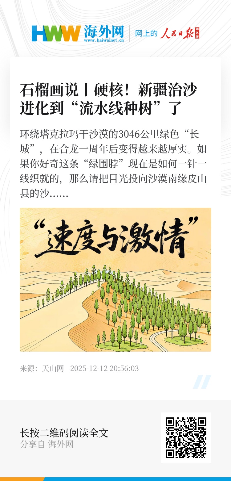 环绕塔克拉玛干沙漠的3046公里绿色“长城”,在合龙一周年后变得越来越厚实。如果你好奇这条“绿围脖”现在是如何一针一线织就的,那么请把目光投向沙漠南缘皮山县的沙海: