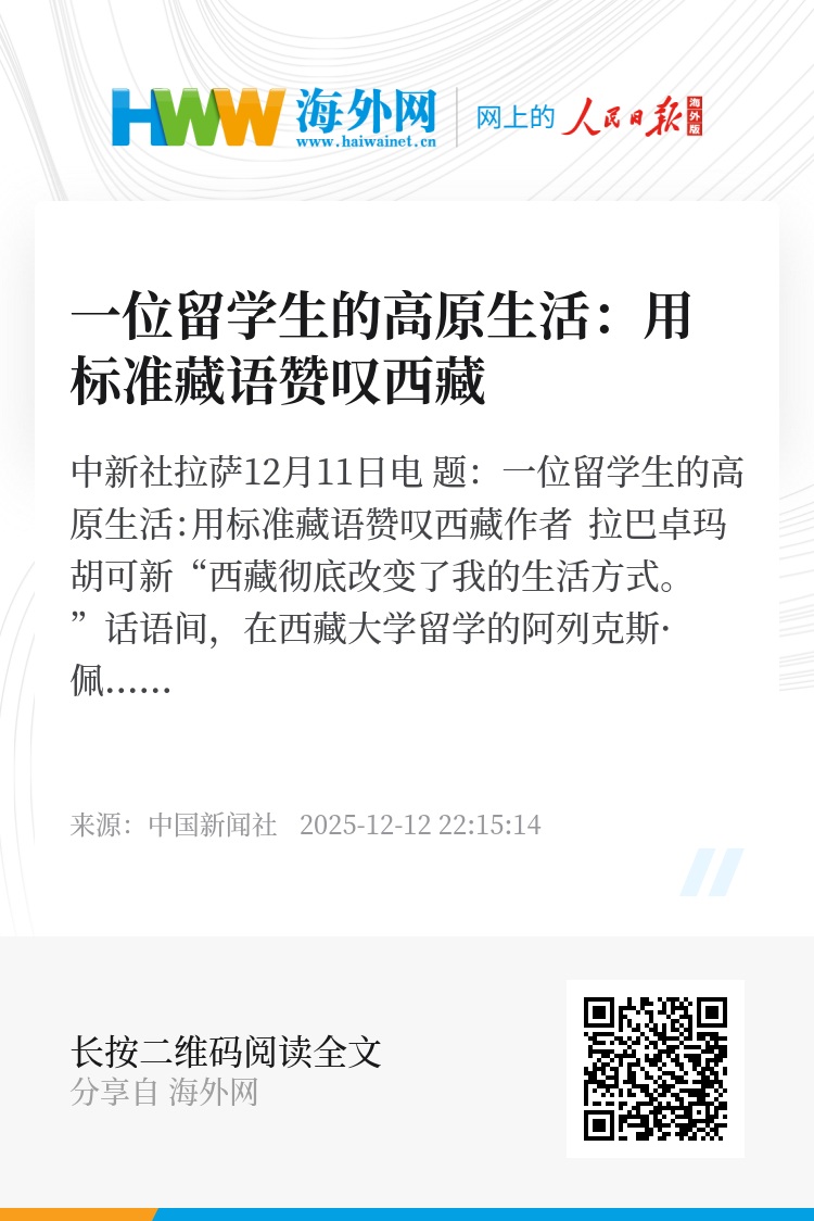 “西藏彻底改变了我的生活方式。”话语间,在西藏大学留学的阿列克斯·佩奇科夫(Aleksei Perchuko)向中新社记者展示他自己在海外出版的西藏旅行刊物。他笑谈:“本来我是一个来西藏的游客,现在也是一个西藏旅行专家了。”他还用标准的藏语形容西藏真的“亚布都”(藏语:太棒了)。