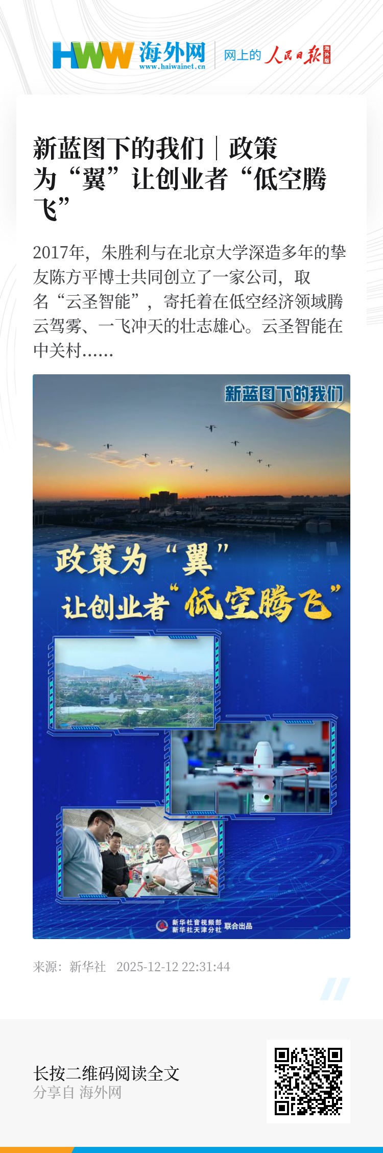 2017年,朱胜利与在北京大学深造多年的挚友陈方平博士共同创立了一家公司,取名“云圣智能”,寄托着在低空经济领域腾云驾雾、一飞冲天的壮志雄心。