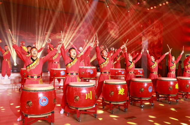 在威武雄壮的鼓乐表演《川鲸雄风》中