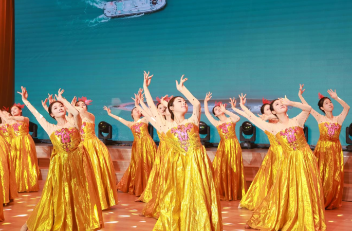 “潜行·闪光的航迹”主题文艺晚会在全场大合唱