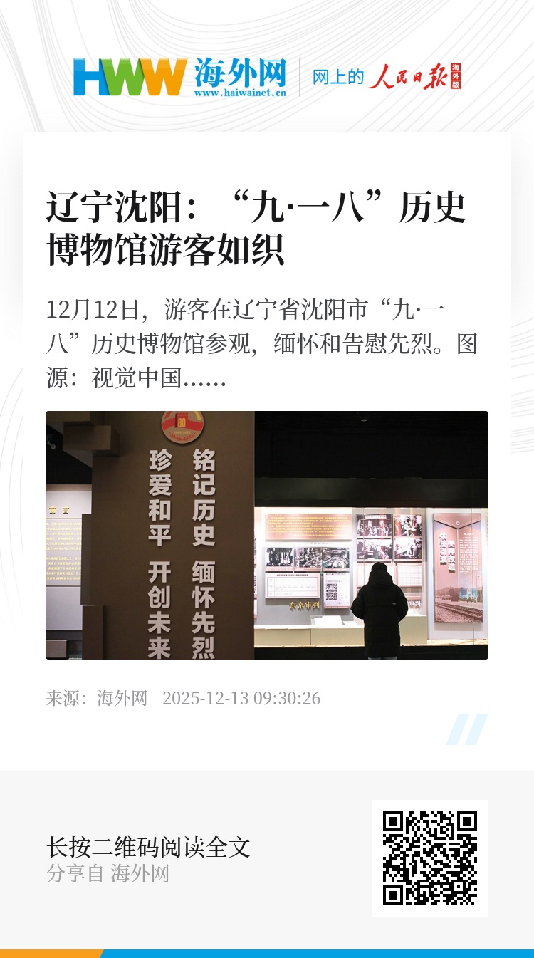 32915941,.辽宁沈阳:“九·一八”历史博物馆游客如织,.2025-12-13 09:30:26,.204555,.陈菲扬、刘强
