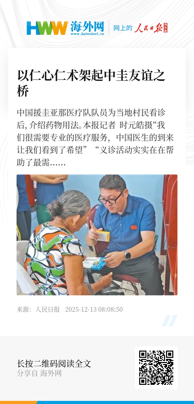 “我们很需要专业的医疗服务,中国医生的到来让我们看到了希望”“义诊活动实实在在帮助了最需要的人”……12月初,中国援圭亚那医疗队赴距圭首都乔治敦70公里的社区开展义诊活动,受到当地民众欢迎。