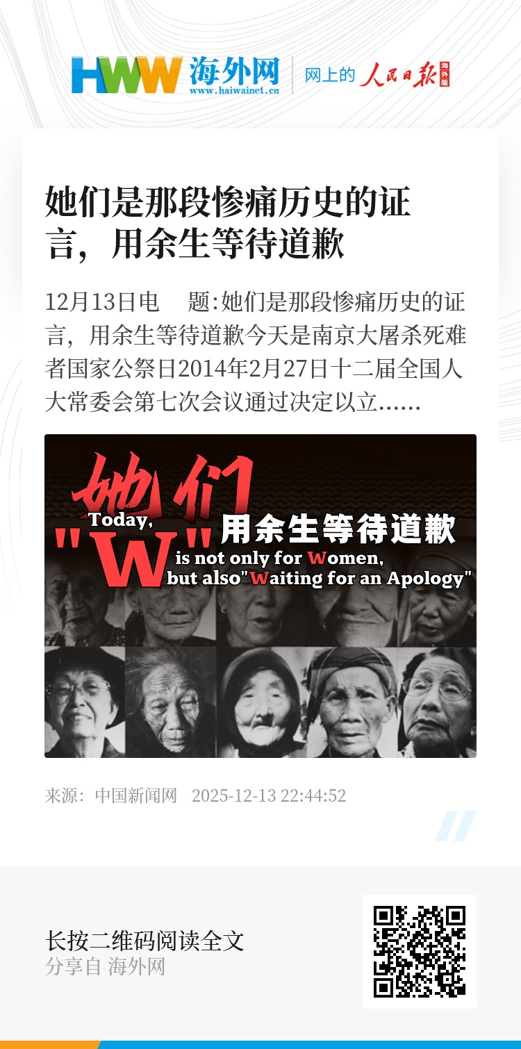 中新网12月13日电 题:她们是那段惨痛历史的证言,用余生等待道歉