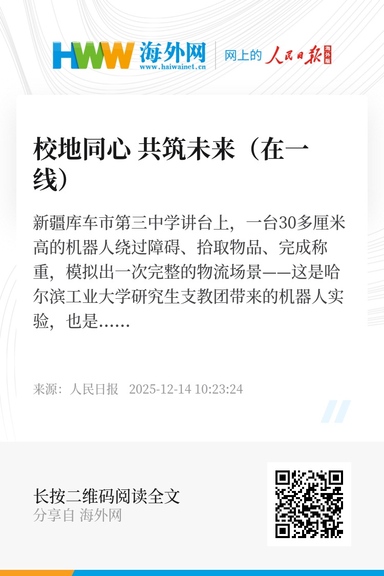 新疆库车市第三中学讲台上,一台30多厘米高的机器人绕过障碍、拾取物品、完成称重,模拟出一次完整的物流场景——这是哈尔滨工业大学研究生支教团带来的机器人实验,也是当地中学生喜爱的科普课堂。