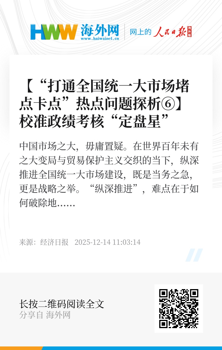联通的是市场,孕育的是机遇,积蓄的是新动能。从着力整治企业低价无序竞争乱象、着力整治政府采购招标乱象、着力整治地方招商引资乱象、着力推动内外贸一体化发展、着力补齐法规制度短板,到着力纠治政绩观偏差,从行为纠偏到思想探源,一系列举措正重塑发展的新优势,终将把14亿多人口的超大规模市场转化为全球最具吸引力、最具创新浓度、最具治理效能的统一大市场。