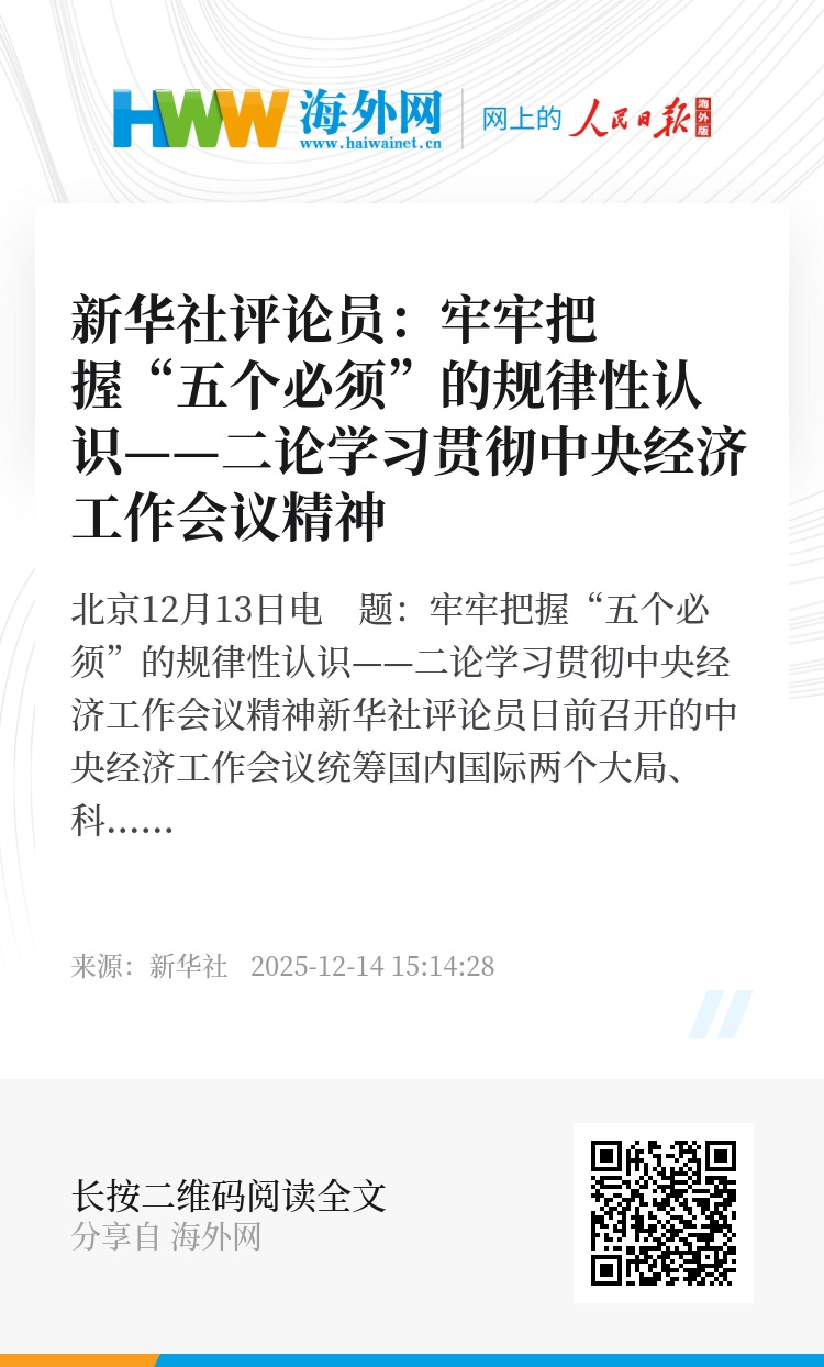 新华社北京12月13日电 题:牢牢把握“五个必须”的规律性认识——二论学习贯彻中央经济工作会议精神