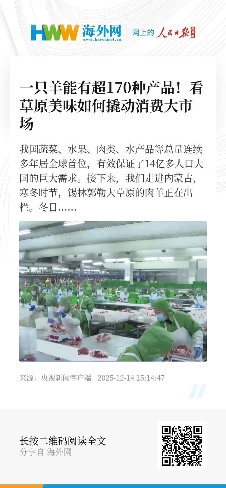 冬日的草原带着寒意,但位于内蒙古锡林郭勒盟的一个肉羊加工企业厂区内仍是一片忙碌。锡林郭勒羊的出栏季,从夏天开始预计一直会持续到年底。