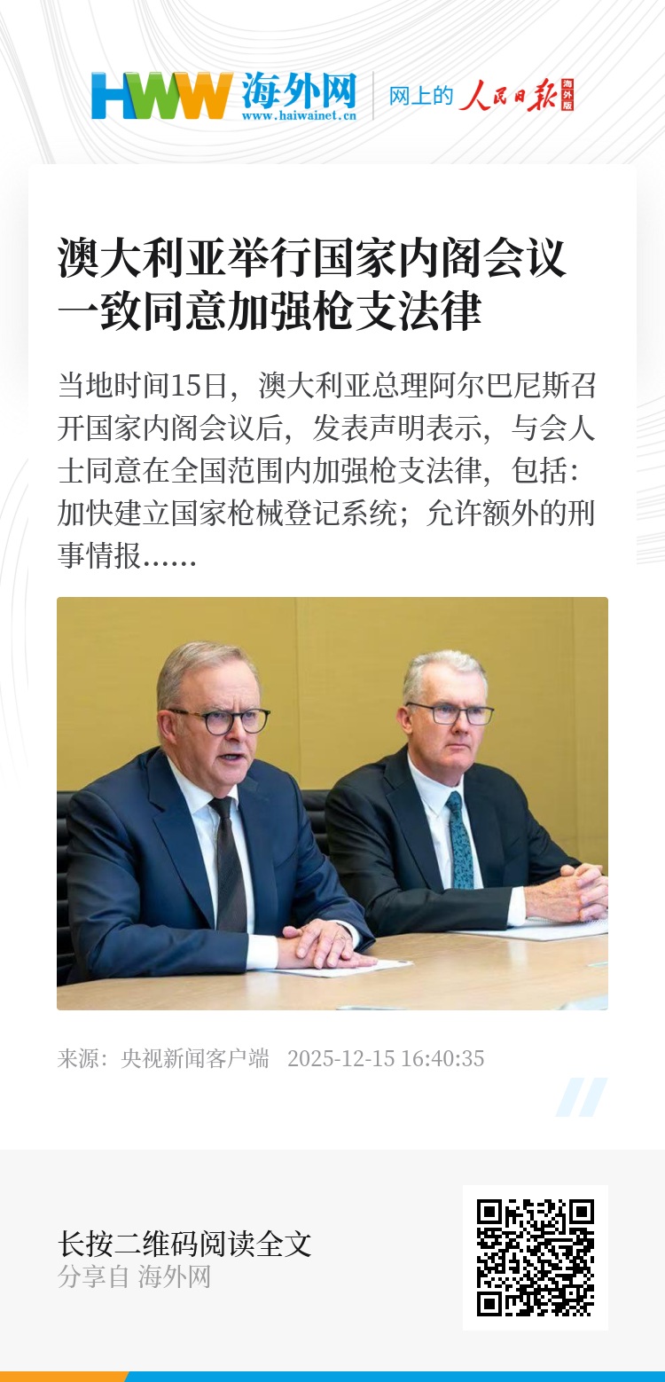 当地时间15日,澳大利亚总理阿尔巴尼斯召开国家内阁会议后,发表声明表示,与会人士同意在全国范围内加强枪支法律,包括: