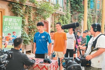 《进球吧!儿子娃娃》剧组在喀什古城拍摄。