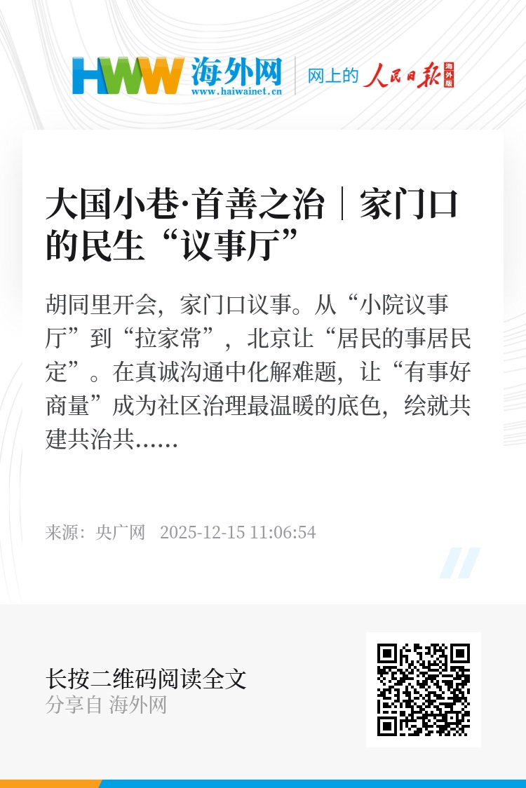 胡同里开会,家门口议事。从“小院议事厅”到“拉家常”,北京让“居民的事居民定”。在真诚沟通中化解难题,让“有事好商量”成为社区治理最温暖的底色,绘就共建共治共享的社区治理新画卷。