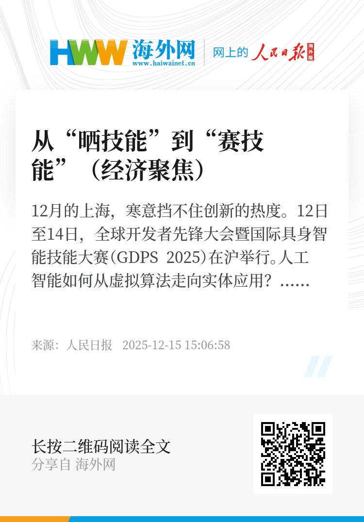 人民日报广州12月14日电(记者李刚、洪秋婷)12月12日至14日,2025年粤港澳大湾区人工智能与机器人产业大会暨广东省人工智能与机器人技能大赛在广东广州举行。