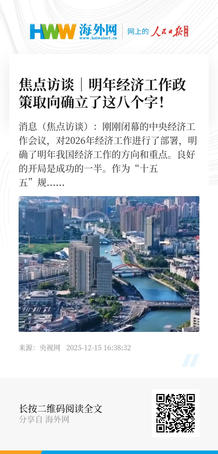 央视网消息(焦点访谈):刚刚闭幕的中央经济工作会议,对2026年经济工作进行了部署,明确了明年我国经济工作的方向和重点。良好的开局是成功的一半。作为“十五五”规划的开局之年,明年的经济工作成色如何,意义重大。在我国经济发展中老问题、新挑战不少,外部环境变化影响加深的当下,明年的经济工作具体要怎么干,又有哪些重点任务?今天继续聚焦解读。
