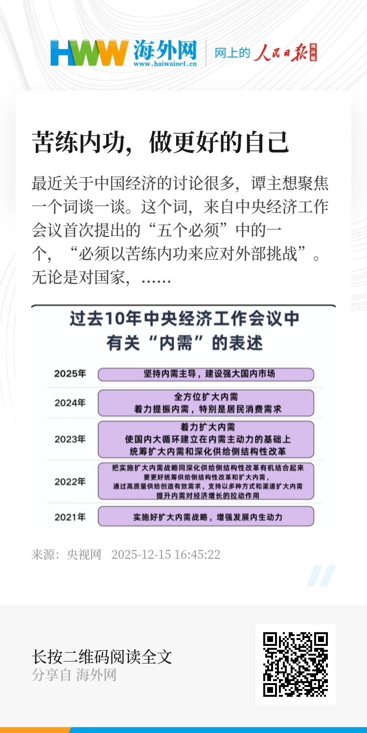 这个词,来自中央经济工作会议首次提出的“五个必须”中的一个,“必须以苦练内功来应对外部挑战”。