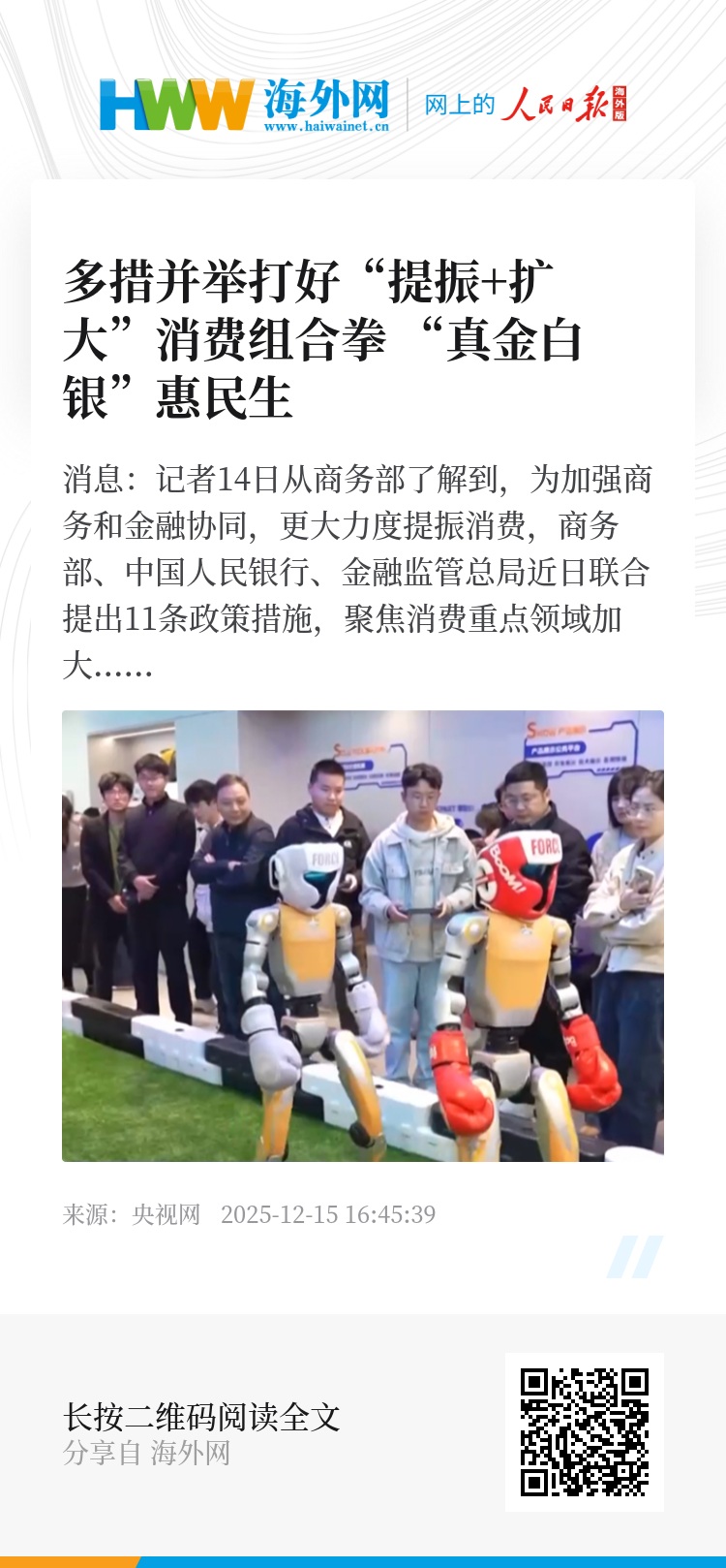 围绕商品消费、服务消费、新型消费等重点领域,商务部、中国人民银行等部门在新政策措施中明确提出,加大金融支持力度,进一步惠民生、促消费。
