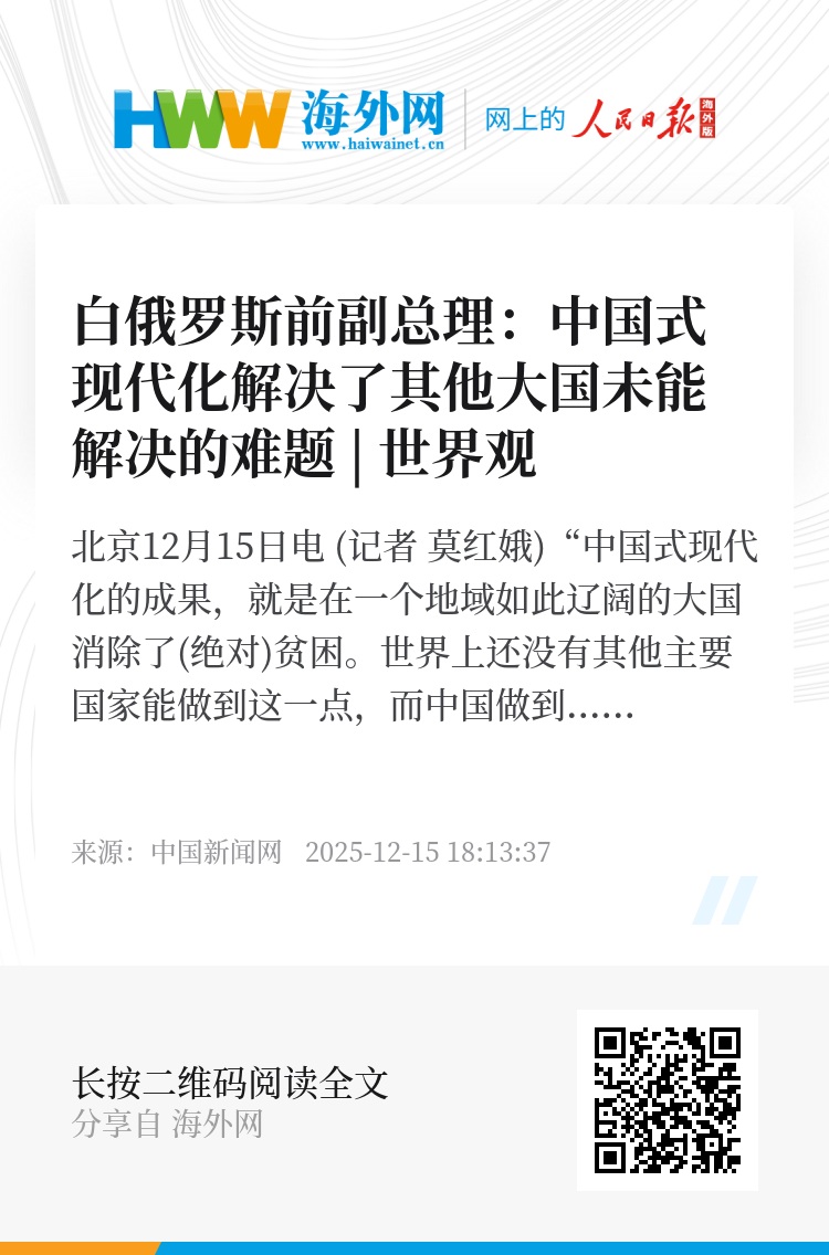 视频:白俄罗斯前副总理:中国式现代化的核心是人民至上丨世界观 来源:中国新闻网
