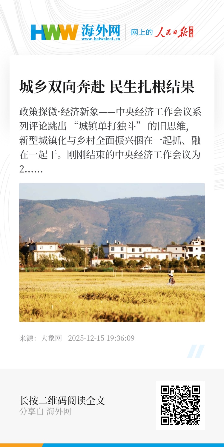 刚刚结束的中央经济工作会议为 2026 年新型城镇化擘画了 “统筹为纲、融合为魂、惠民为本” 的全新蓝图。城镇化不再是农民 “背井离乡的单向奔赴”,而是城乡 “各取所长的双向赋能”—— 资本下乡、人才返乡、农产进城、服务下沉,让 “进城安家” 成为看得见、摸得着的民生盛宴,新型城镇化的 “幸福感” 愈发浓郁,“融合味” 越品越醇厚。