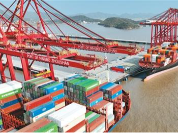 船舶近日停靠在宁波舟山港梅山港区装卸货物。