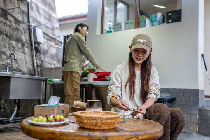 2024年9月15日,几名旅居客在曲靖市马龙区通泉街道杨官田社区土瓜冲村聚会迎接中秋节。因为劳动力外出务工、农户迁盖新房等因素,土瓜冲村的120多间老房子一度被闲置,村子成了典型的“空心村”。近年来,当地采用政府主导、集体协同、企业运营、村民参与的乡村开发模式,盘活农村闲置资源,打造乡村旅居示范点。77间老旧闲置房屋通过“轻介入、微改造、精提升”的方式被打造成乡村民宿、咖啡馆、餐厅、烘焙店等,既保留了乡土特色,又提升了入住便利度和舒适感,吸引大批“新村民”入驻。