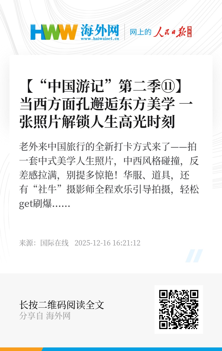 老外来中国旅行的全新打卡方式来了——拍一套中式美学人生照片,中西风格碰撞,反差感拉满,别提多惊艳!华服、道具,还有“社牛”摄影师全程欢乐引导拍摄,轻松get刷爆社交圈的中式大片!