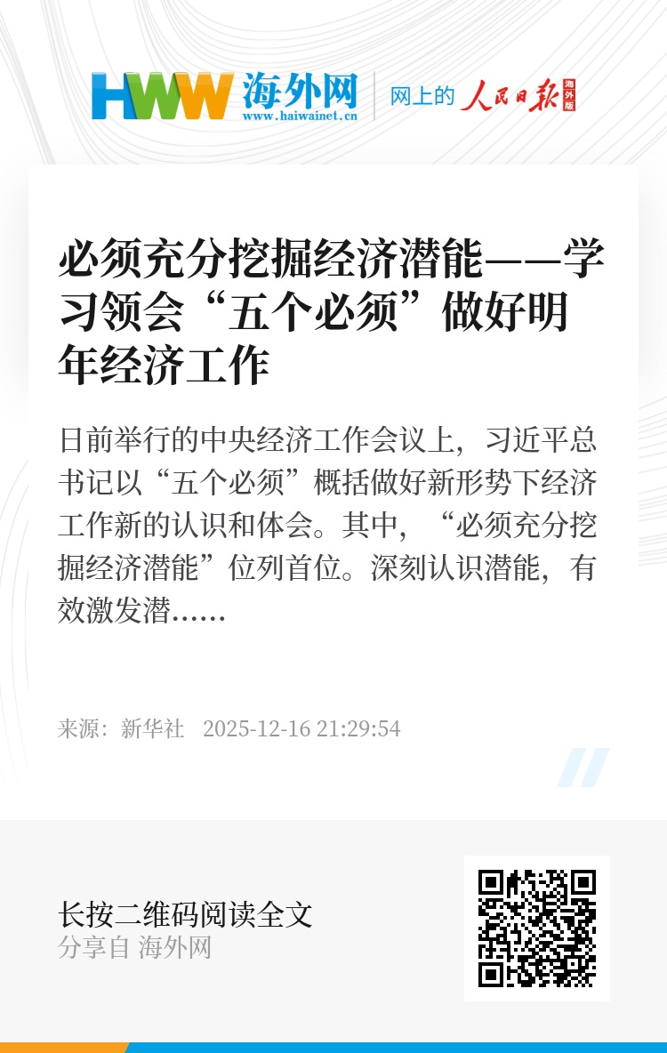 深刻认识潜能,有效激发潜能,将其转化为推动经济高质量发展的澎湃动能,我们必将不断巩固拓展经济稳中向好势头,实现“十五五”良好开局。