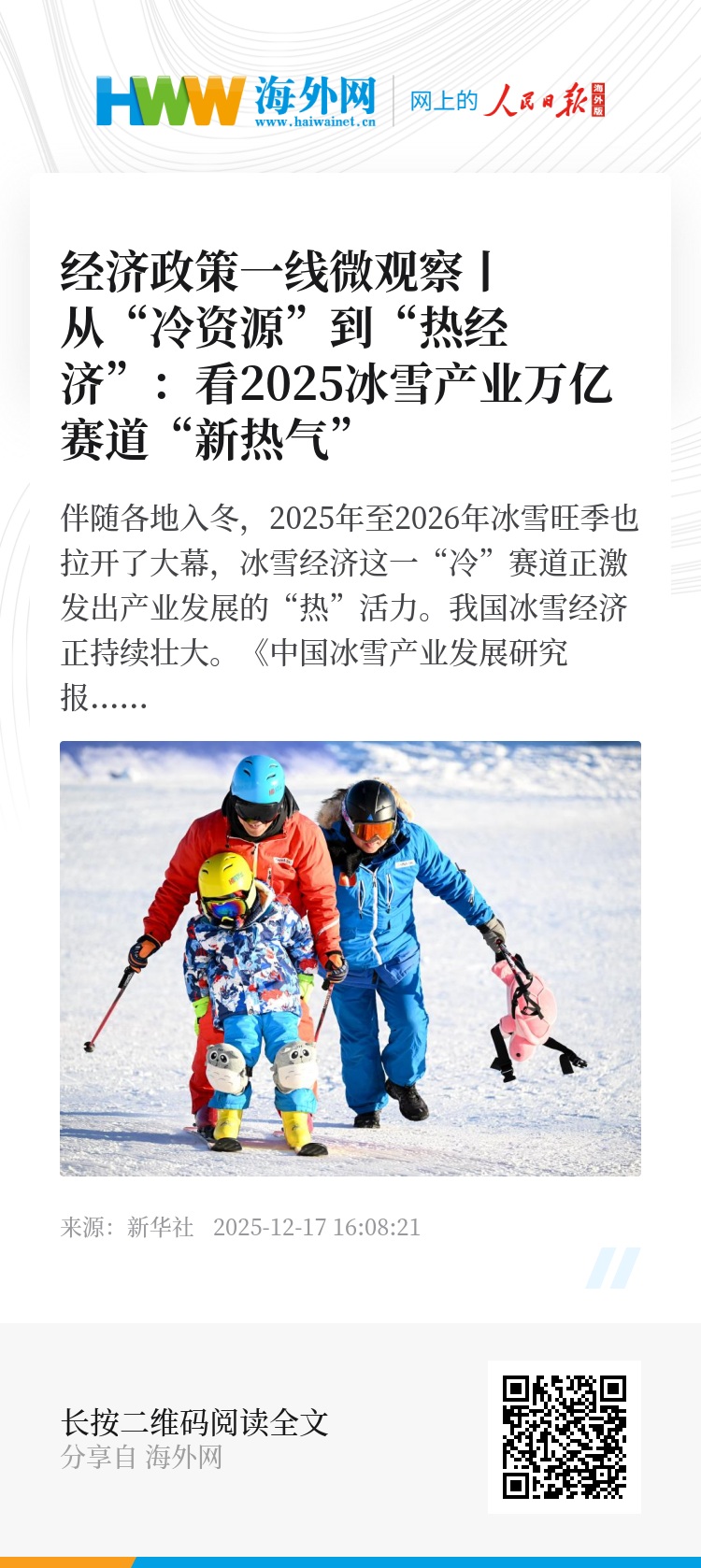 伴随各地入冬,2025年至2026年冰雪旺季也拉开了大幕,冰雪经济这一“冷”赛道正激发出产业发展的“热”活力。
