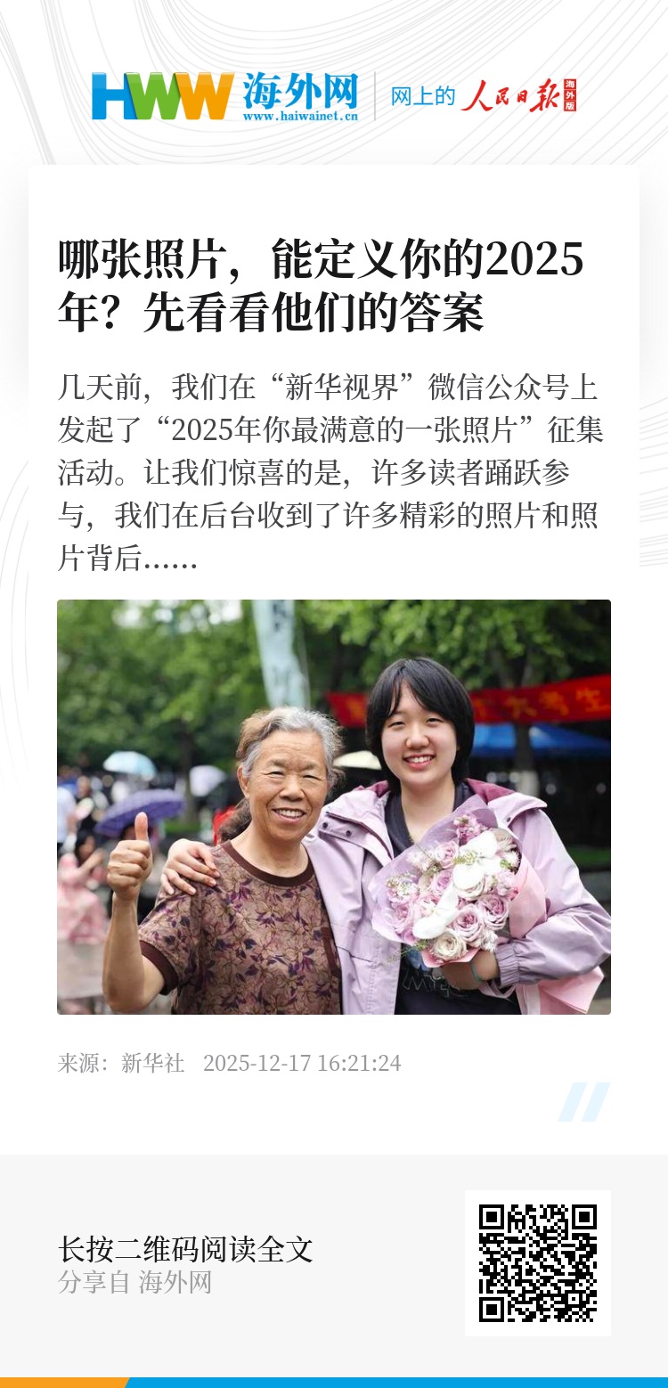 几天前,我们在“新华视界”微信公众号上发起了“2025年你最满意的一张照片”征集活动。
