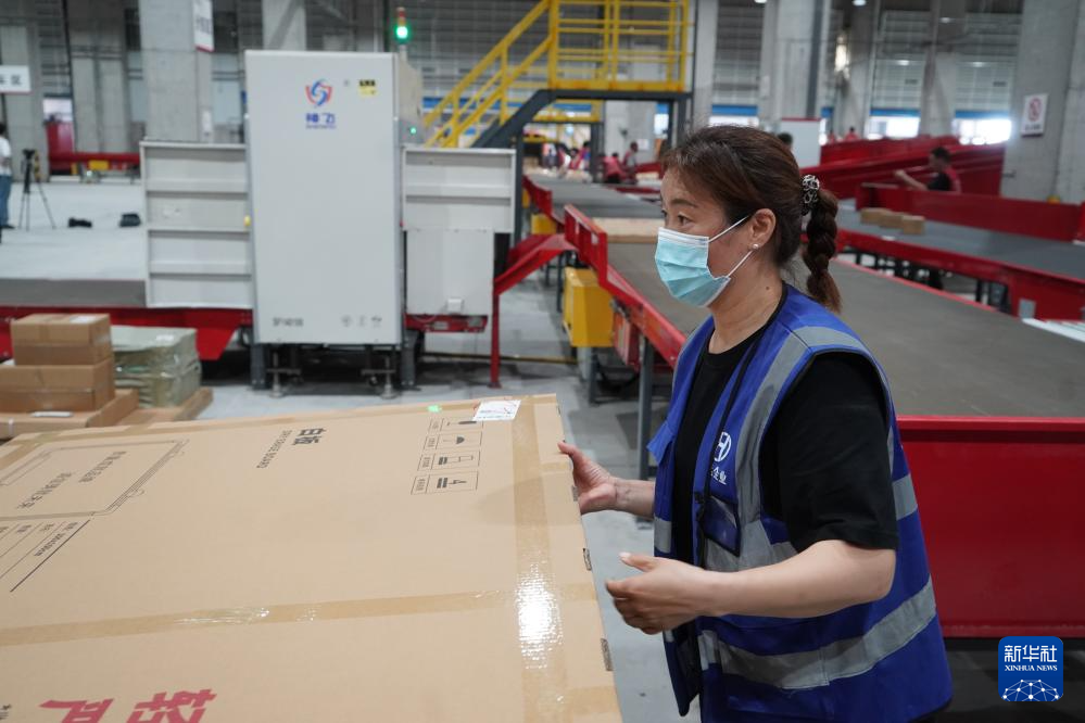 沭阳县华东智慧物流园卸车区的工人在搬运货物(7月23日摄)。新华社发(刘臻睿 摄)