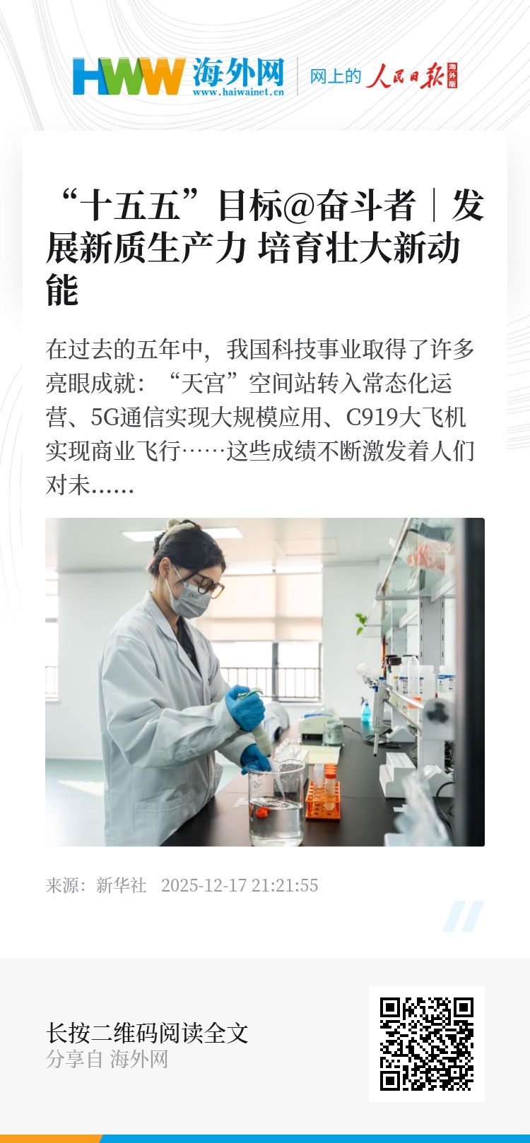 展望“十五五”,推动高质量发展,最重要是加快高水平科技自立自强,积极发展新质生产力,在推动科技创新、加快培育新动能、促进经济结构优化升级上取得实质性、突破性进展,使我们国家能够在现代经济大潮中始终保持弄潮儿的角色。