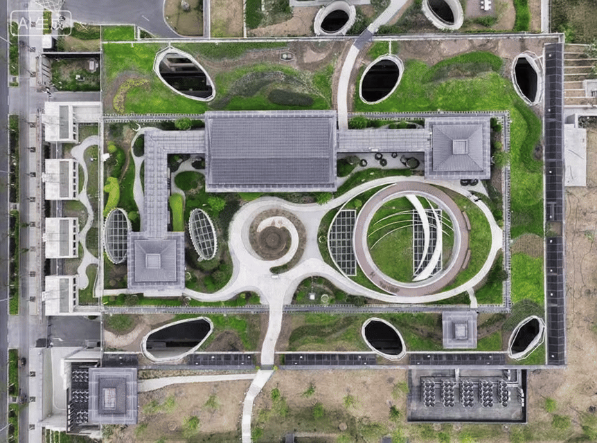 这是雄安新区剧村220千伏变电站(2025年4月15日摄,无人机照片)。该变电站屋顶覆土建设成公园,形成与城市融合共生的景观。新华社记者 牟宇 摄