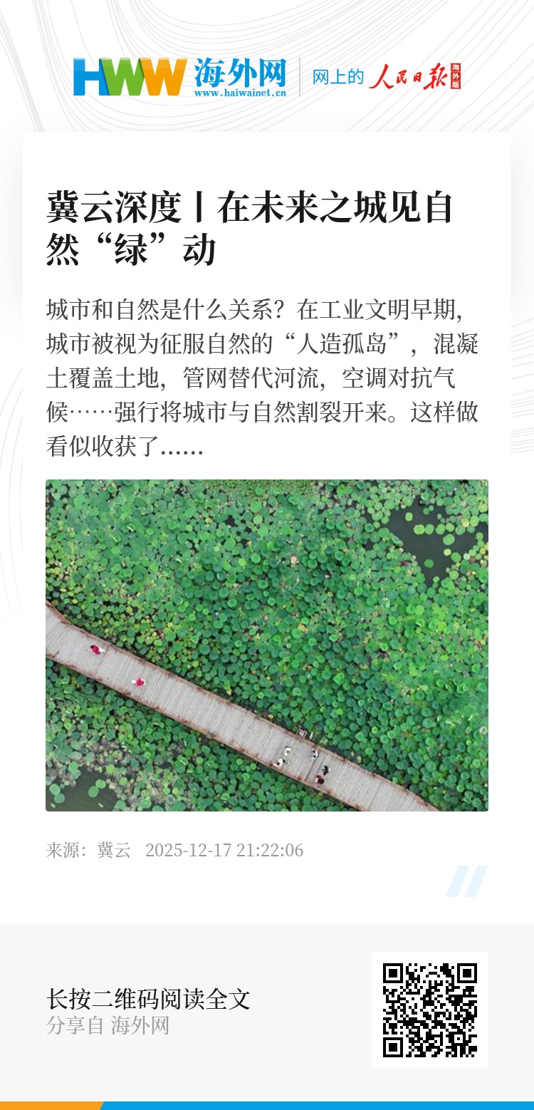从“城中有绿”到“绿中有城”,雄安的生态建设实践告诉我们:高水平现代化城市,主角不会是灰色冰冷的钢筋水泥,而是有生机的自然、有温度的社会、有活力的人形成的有机统一。美好的生态,是城市永续发展之基,是城市人居品质之本,是城市竞争优势之源。雄安的绿色发展新范式,必将激励更多城市探索人与自然和谐共生的现代化道路,共同绘制美丽中国的壮丽画卷。